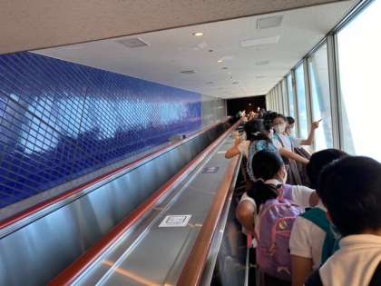 長いエスカレーターを上ると、いよいよ海遊館の世界に突入です!