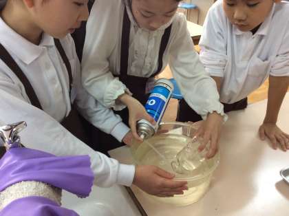 酸素中でろうそくや線香、スチールウールが燃える様子を観察。