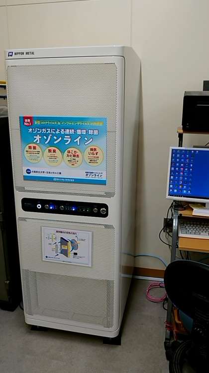 この空気清浄機は特許技術を使ってオゾンの力でウイルスを除菌するもので、十三市民病院などの大きな病院で使われているそうです。