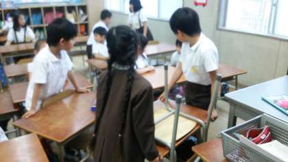 お友だちの机を一緒に運んであげたり、通れるように道をあけてあげたり