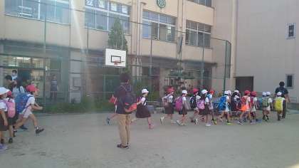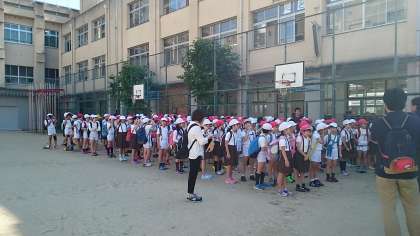 台風一過の青空の中、5年生が「甲山森林公園」の遠足に出発しました。