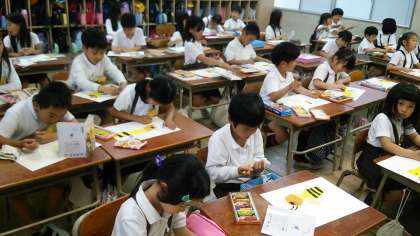図工の時間に「みつばちとわたし」の絵を描きました。
