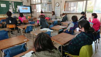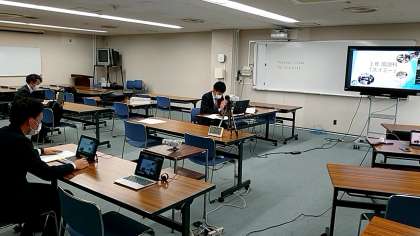 公開授業のビデオ視聴の後、授業者が研究協議会で発表を行い、校内では教職員がオンラインで参加しました。