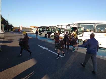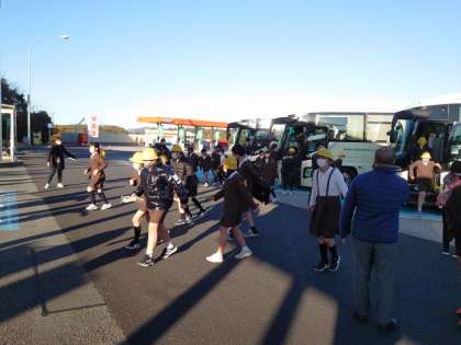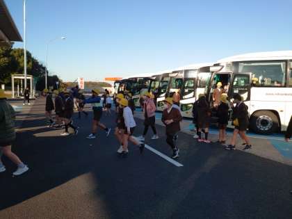 バスの中では静かにビデオ鑑賞をしていますが、朝が早かったからか、眠っている子もいます。