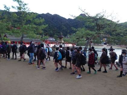 残念ながら海に浮かぶ大鳥居は工事中でしたが、回廊を通ると平安時代から続く厳かな雰囲気を十分感じる事ができました。