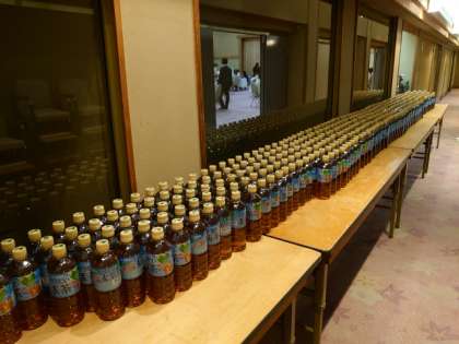 今晩から明日にかけて、1人あたり3本のお茶を用意していただきました。