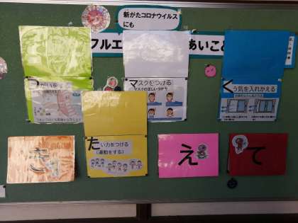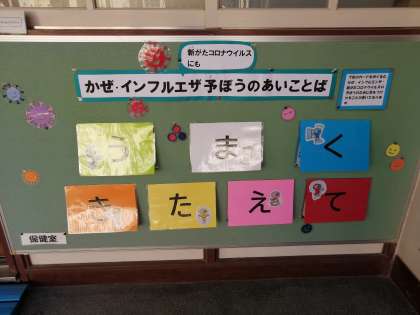 12月の掲示物は「かぜ・インフルエンザよぼうのあいことば」です。
