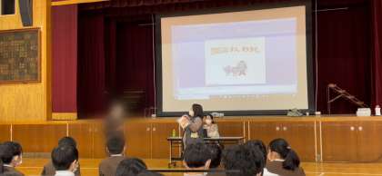 違法薬物の話では、実際に子どもと養護教諭で断る方法を実演しました。