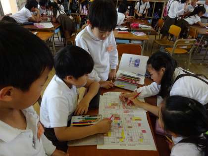 「どんなところにお店が多いかな?」「工場は少ないね」「マンション多いなぁ」など気付いたことを話しながら活動していました。