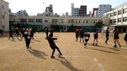 今日はとても寒い一日でしたが、運動場にはみんなの楽しそうな歓声が響いていました。