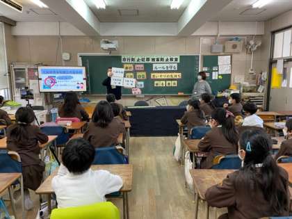 外部から講師が来ていただき、非行防止教室を行いました。パワーポイントやペープサート等で分かりやすくお話していただきました。
