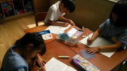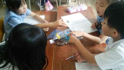 いろいろな方から見たり、長さをはっかたりしながら、ていねいに観察しました。