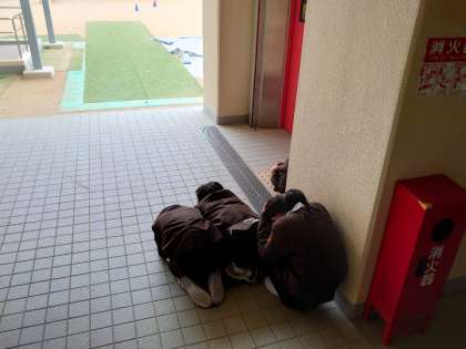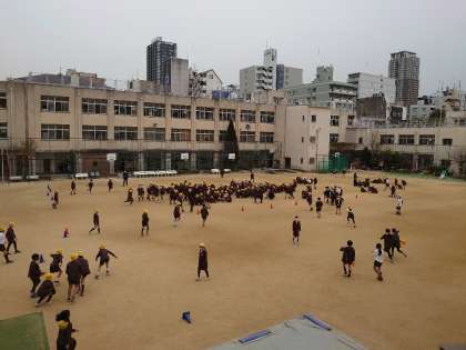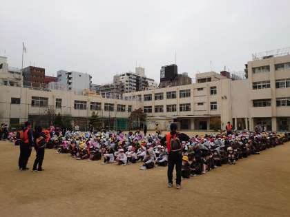 今日は、授業中ではなく昼休みと掃除の時間に発生するという想定だったので、みんなバラバラの場所から運動場を目指しました。