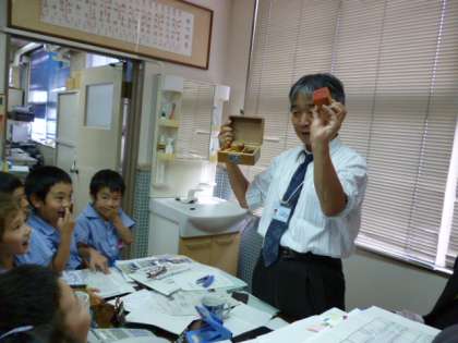 2年生に教えてもらった特別教室で、もっと知りたいことを1年生だけで調べに行きました。校長室、事務室、管理作業員室、理科室、音楽室、家庭科室に分かれて行きました。わかった事をクラスの友達に発表して伝えます。