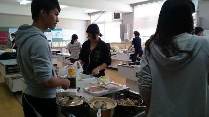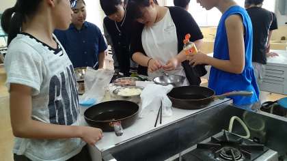先輩方の指導や見守りの中で、楽しそうに昼食を作っていました。