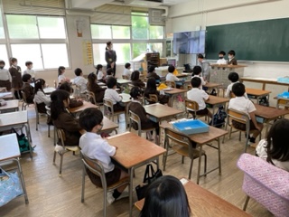 本日は、2年生の子どもたちが1年生のみなさんに学校紹介をしてくれました。学校の中の教室や施設について、丁寧に1年生にもわかりやすく伝えてくれました。とっても緊張しながら発表する子もいましたが、みんな楽しく役割を果たしていました。これまでの練習の成果をしっかりと発揮した、すばらしい会になりました。1年生のみなさんも、とても喜んでくれていました。