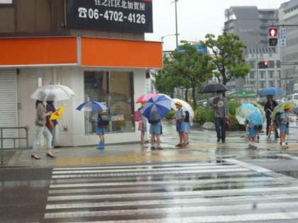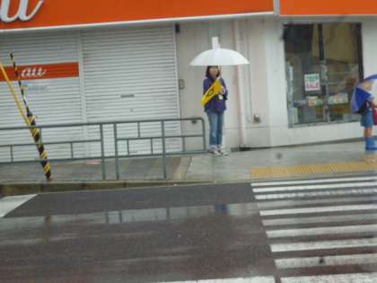 雨の中、PTAの方が朝の登校指導をしてくださっていました。
