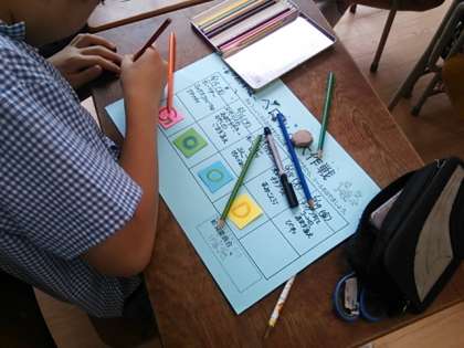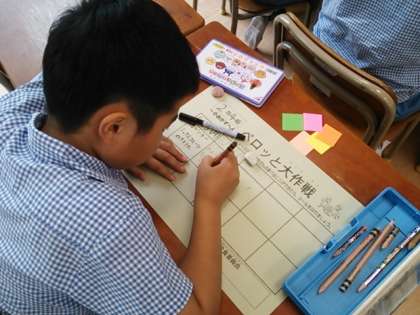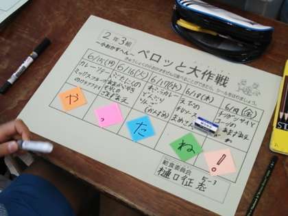 昨日の給食委員会では、来週から始まる「ペロッと大作戦の」カードを作りました。各クラスのカードを一人一人が丁寧に書いて仕上げました。