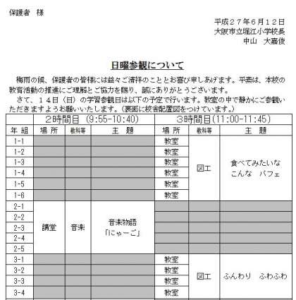 多数ご参観くださいますよう、よろしくお願いします。
