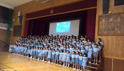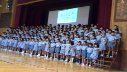 合唱と音読劇のニャーゴをしました。子どもたちの歌声が講堂いっぱいに響き、一つのハーモニーが出来上がりました。