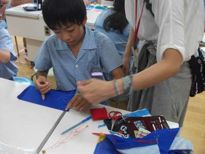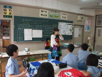 日曜参観(6月14日)家庭科でエプロンづくり。