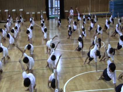 9月の運動会の団体演技、組立体操の練習を始めました。