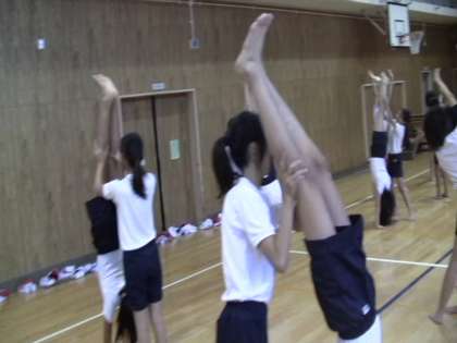 ○今日は、2人技でいつもマットを使っていた技が初めてマットなしでできるようになりました。成功した時は、すごくうれしかったです。最後の「タワー」では、まだ成功したことがありません。しかし、明日も頑張りたいと思います。
