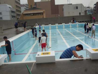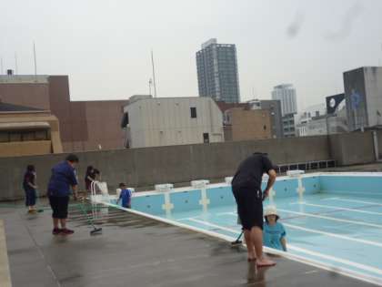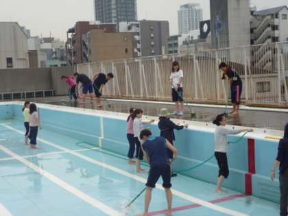 プール開き(6月22日)に向けて、プールの清掃を行いました。