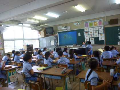 グローバルタイムでは、木曜日の児童集会に向けて英語の歌の練習をしています。