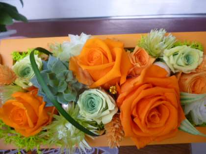 昨日、PTA成人教育一日講習でプリザードフラワーのアレンジメントの講習会がありました。綺麗ですね。