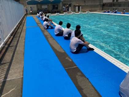 体操服を着たままプールの中に入るとずっしり重たく、体が思うように動かないことを体感しました。