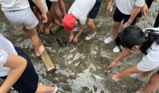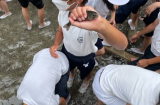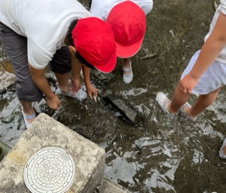 魚つかみ。びくびくしながら、なかなかつかむことができない子もいましたが、歓声をあげながら掴んでいました。