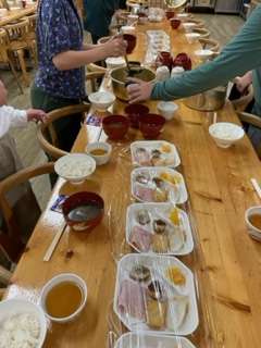 2日目の朝食です。1・3・4組は、食堂での朝食です。食事係も、2回目の経験で手際よく準備しました。