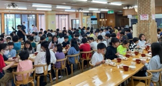 今日の朝食は、2・5・6組は、食堂で、1・3・4組はカートンドックを調理します。