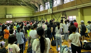 急な大雨にあい、最後の昼食は体育館でいただきました。その後、閉舎式を行い、かねいちやの皆さんに感謝の気持ちを伝えました。