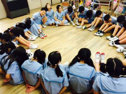 残念ながら雨がふりましたが、昼休みはみんなで仲良くはんかち落としをしました。
