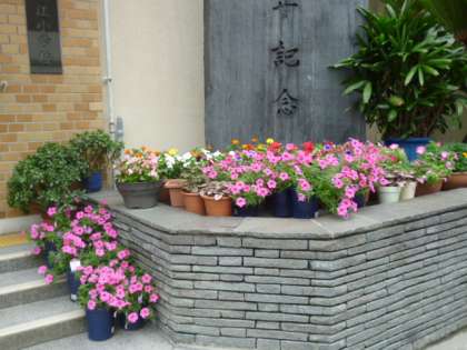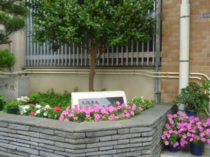 整備されたお花が、子どもたちや来校いただく方々をお出迎えしています。