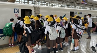 新大阪駅で全員無事に新幹線に乗車しました。いざ、広島へ。