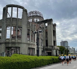 広島駅に到着。広島電鉄に乗り換え、平和記念公園に向かいます。路面電車の揺れに耐えながら、原爆ドームに到着です。