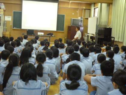 西警察から非行防止について教材のDVDも視聴しながら、お話をしていただきました。