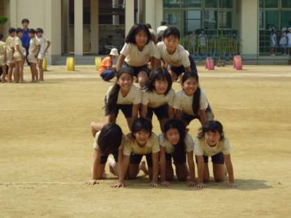 今日は、新しい技のピラミッドをしました。ピラミッドは、55人でしました。だけど、最初はうまいことできませんでした。ピラミッドで組むと、「こころちゃん、がんばって!!もうすぐで終わるから」と元気づけてくれる言葉が聞こえて、私はがんばろう!って思いました。最後に手がいたくなったけど、それほど私は、がんばったんだなぁと思いました。