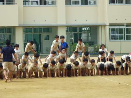 今日の組体では、全員ピラミッドをしました。全員ピラミッドは、55人でしました。僕は、4番目になりました。何回か練習をしているうちにできるようになりました。今日は、きつかったけど、がんばりました。楽しかったです。