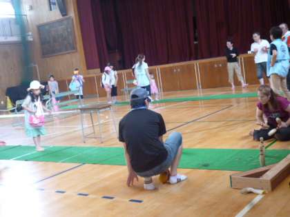 1階の教室や講堂では、ボウリングやボール入れなどもあります。