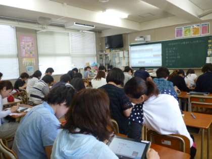 2学期以降の授業が、さらに工夫された楽しい授業になるために、一生懸命研修しています。