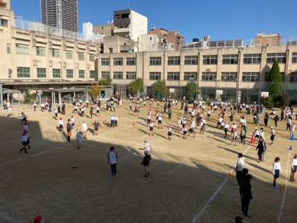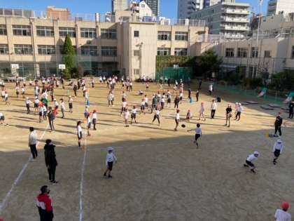 5年児童全体による「キリマンジャロ」の迫力ある合奏に始まり、親子で一緒にドッジビーをして、元気な笑顔がたくさんはじけました!!