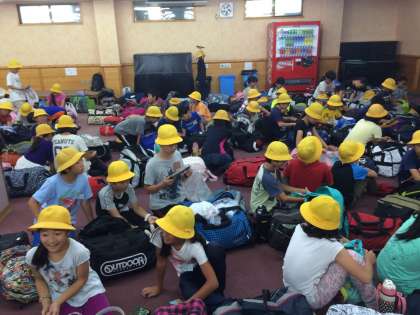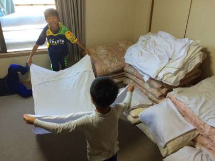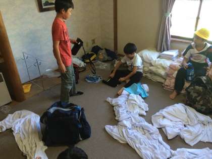 部屋を空ける準備をして、全員で荷物の最終チェックをしています。