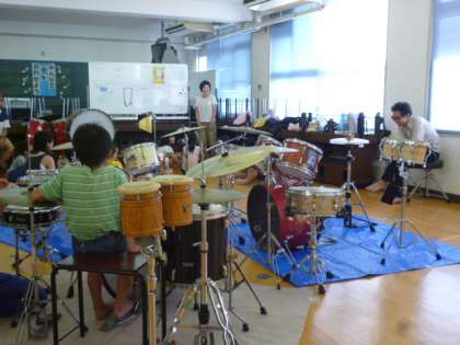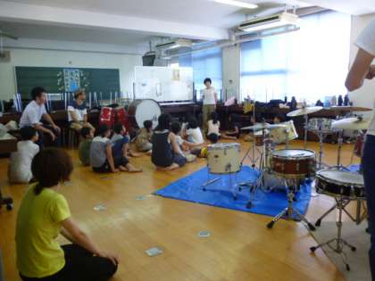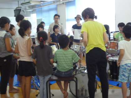 ドラムを使用して自己紹介ゲームをするなどして、チームワークや表現力を育てています。
