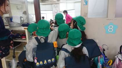 休み時間は何回ありますか?給食はご飯がありますか?等いろいろなことに興味を持って質問してくれました。