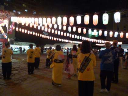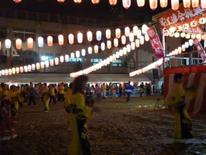 夕方にまとまった雨が降り、お天気が心配されましたが、盆踊りが始まりました。