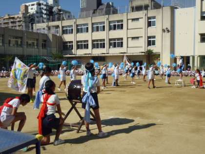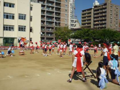 今日は、入場行進、開会式、閉会式の体形確認と応援合戦です。